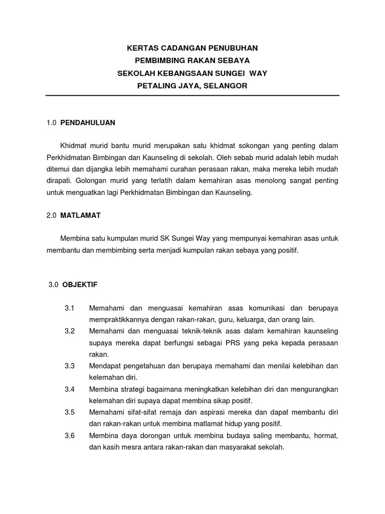 Kertas Cadangan Penubuhan Prs Sekolah Pdf
