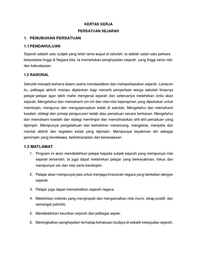 Kertas Kerja Penubuhan Kelab Persatuan Pdf